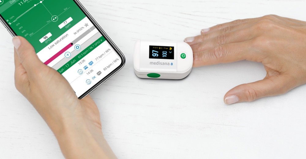 Η περιεκτικότητα οξυγόνου(SpO2) και παλμών εμφανίζονται σε μπάρες ή κύματα.